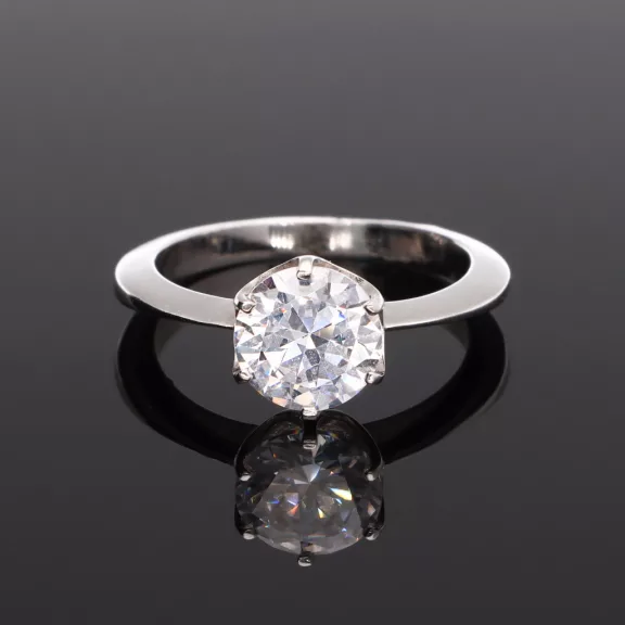 Ezüst gyűrű, középen egy nagyobb kerek cirkónia kővel, 6 karmos foglalatban.