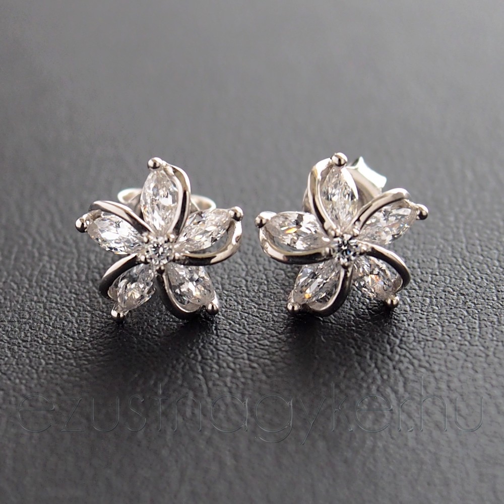 Navett cirkónia kövekkes szirmú ezüst virág bedugós fülbevaló