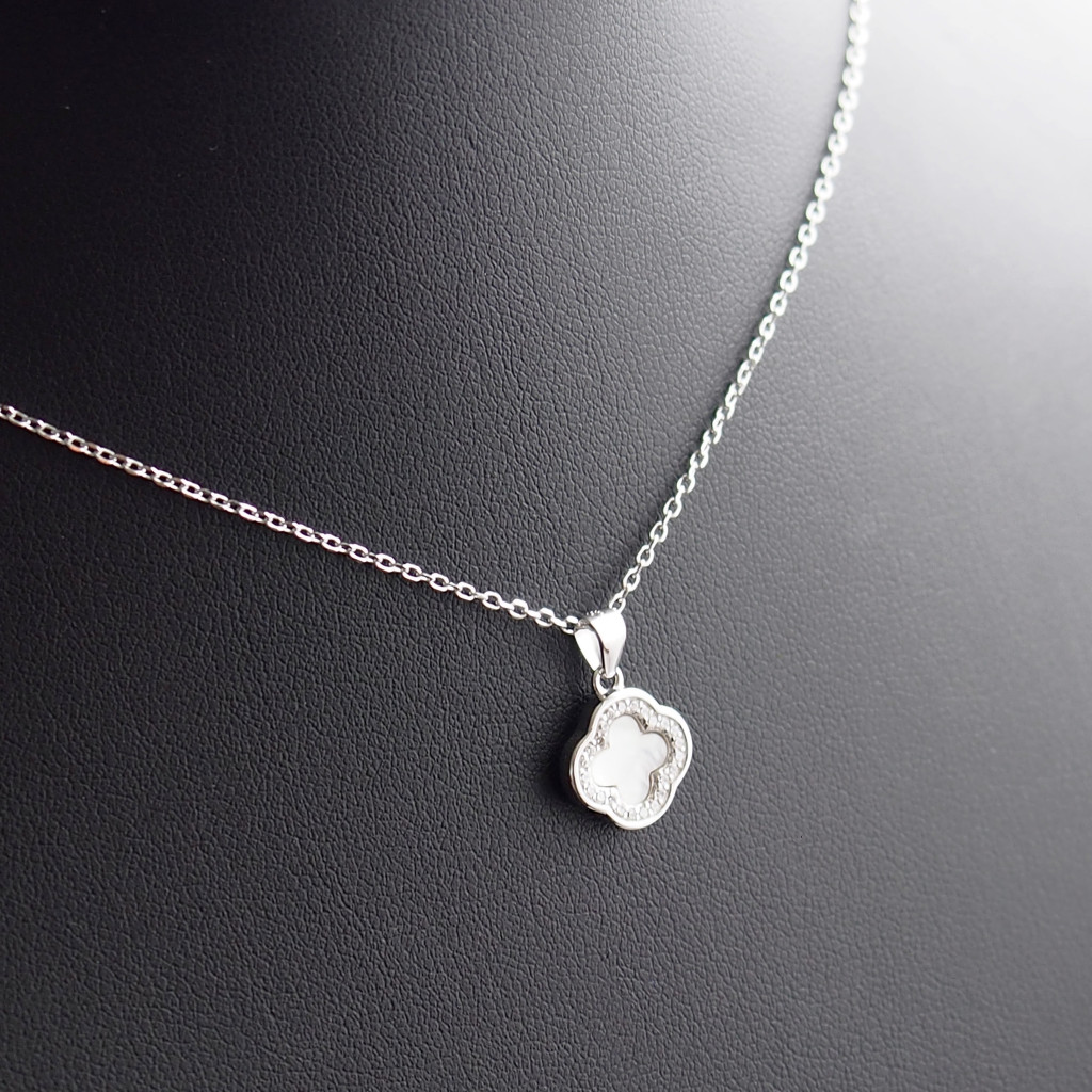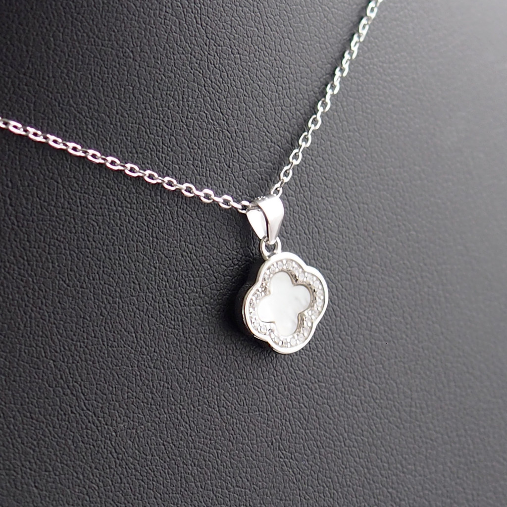 Clifford gyöngyház medál, zárt ezüst foglalatban, körben cirkóna kövekkel díszítve, vékony anker láncon.