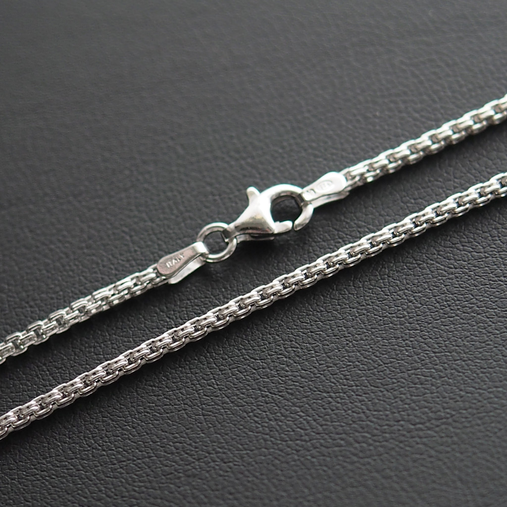 Duplakocka ezüst nyaklánc, tömör kivitelben, 2x2 mm vastagságban.