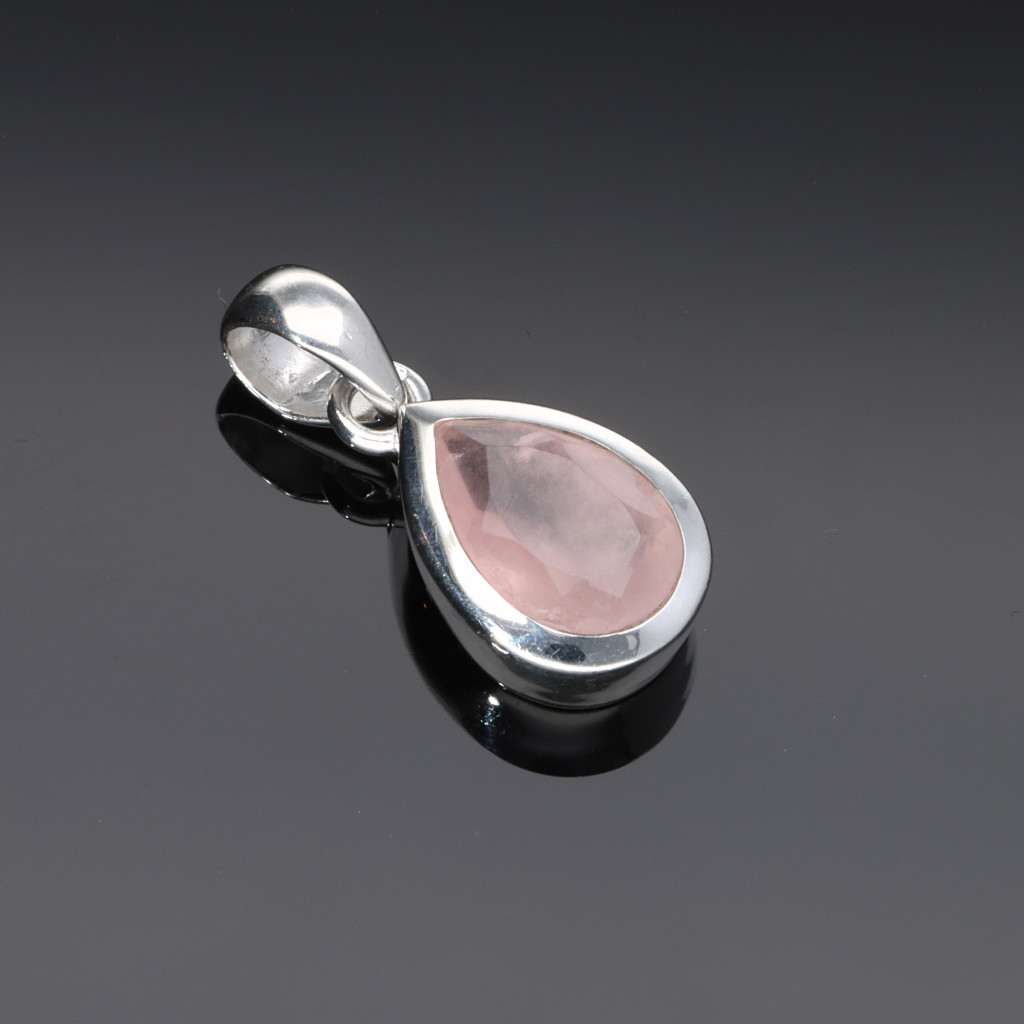 Ezüst medál csepp formájú fazettált fazettált Rózsakvarccal.