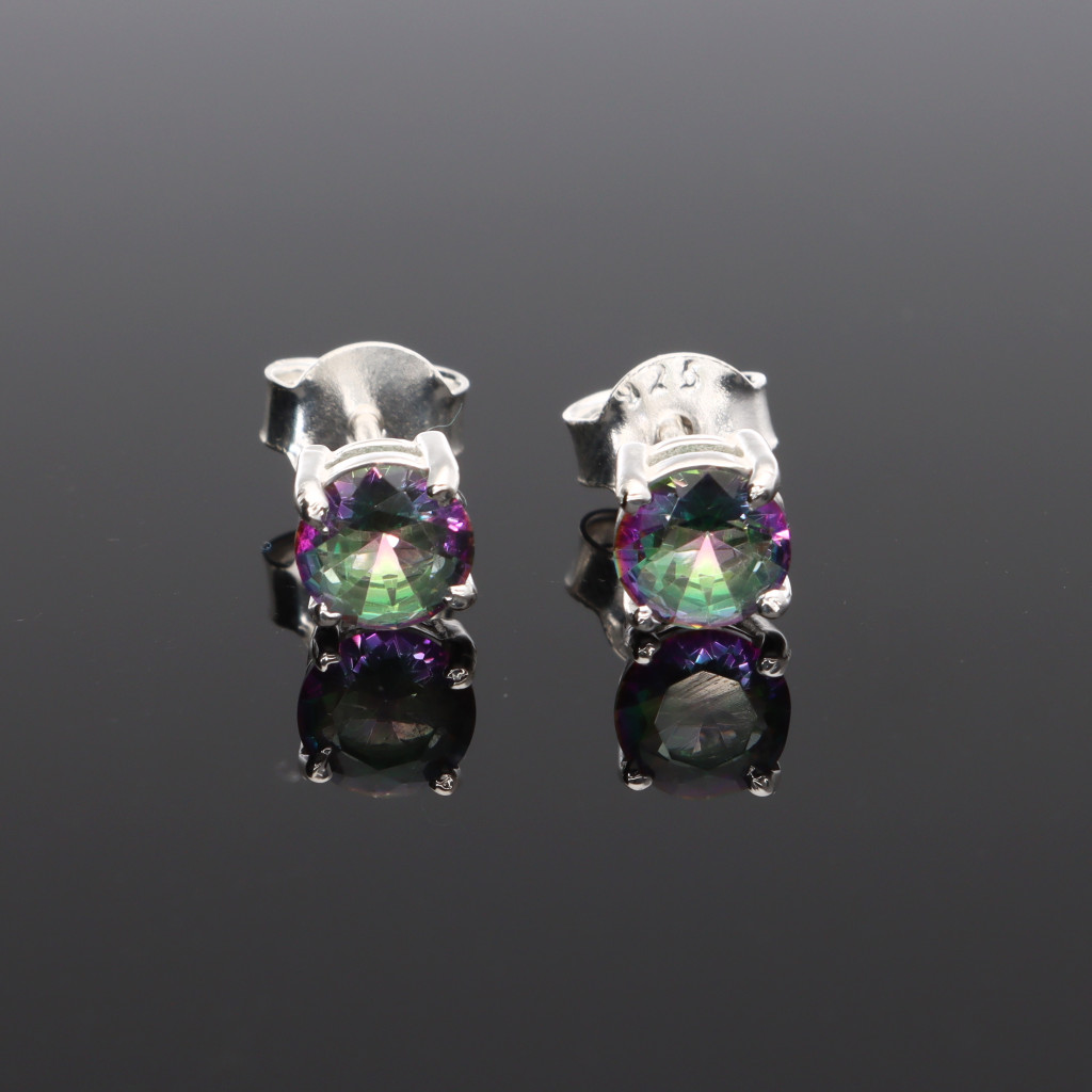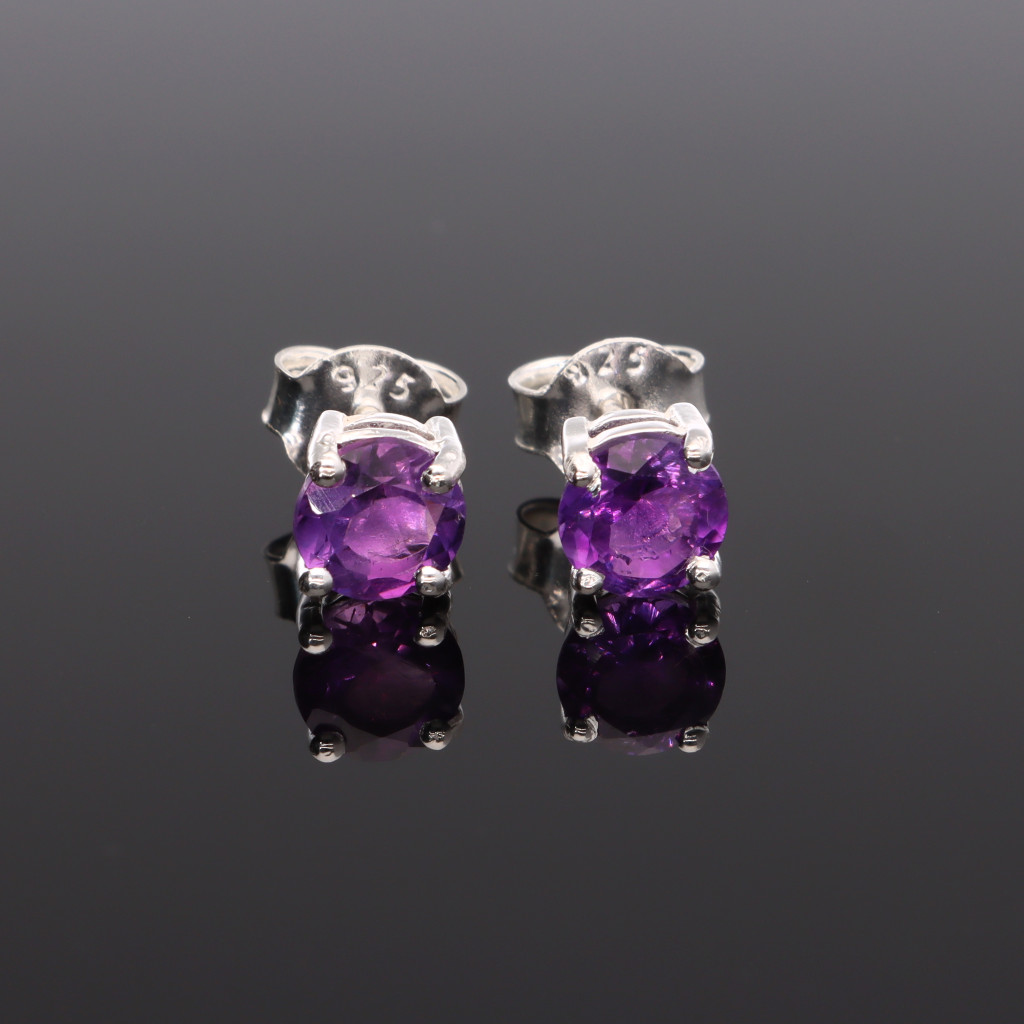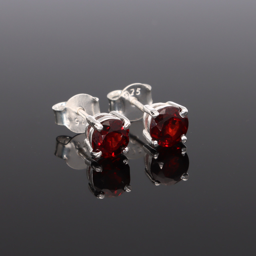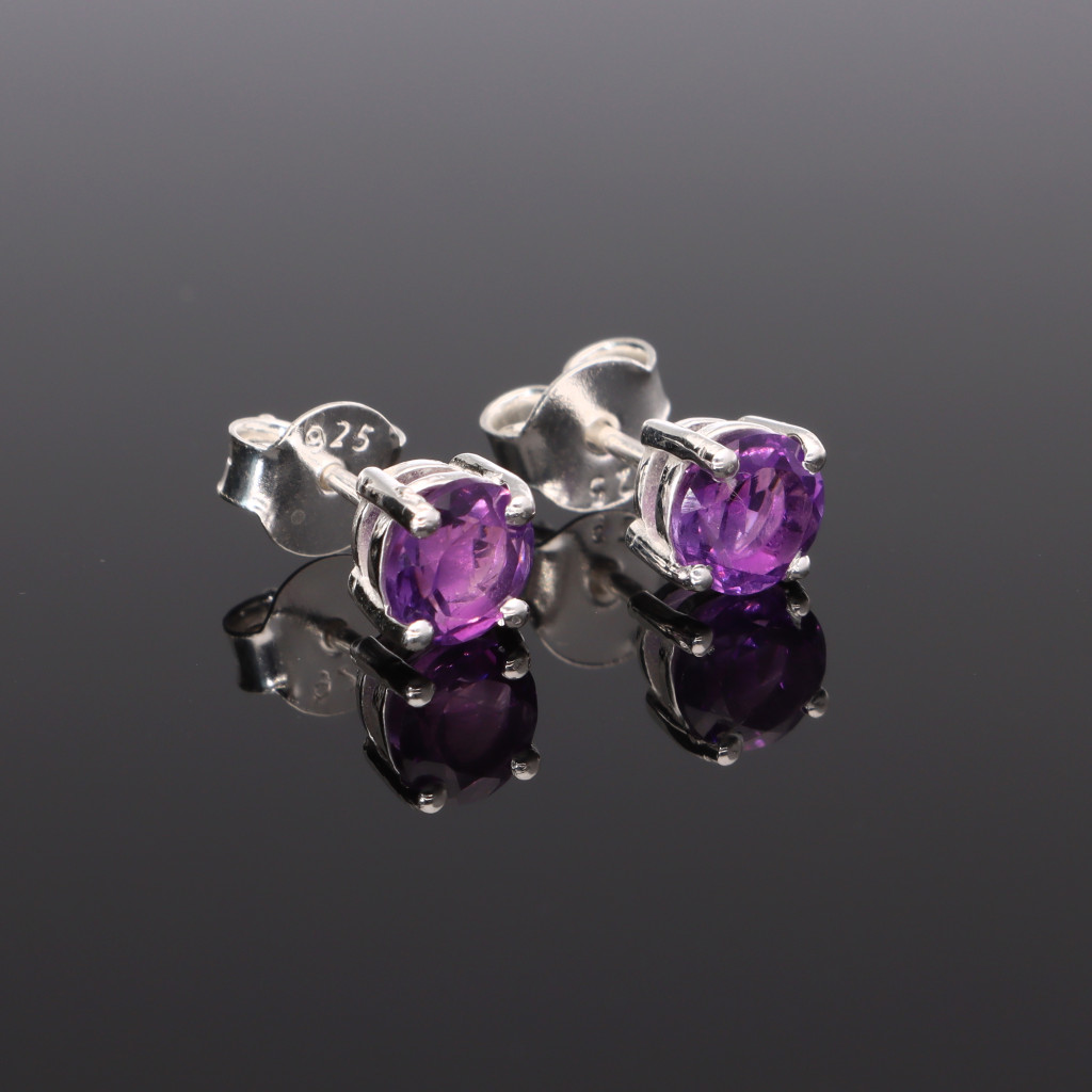 Ezüst fülbevaló, kerek, fazettált csiszolású ásványokkal, 4 karmos foglalatban.