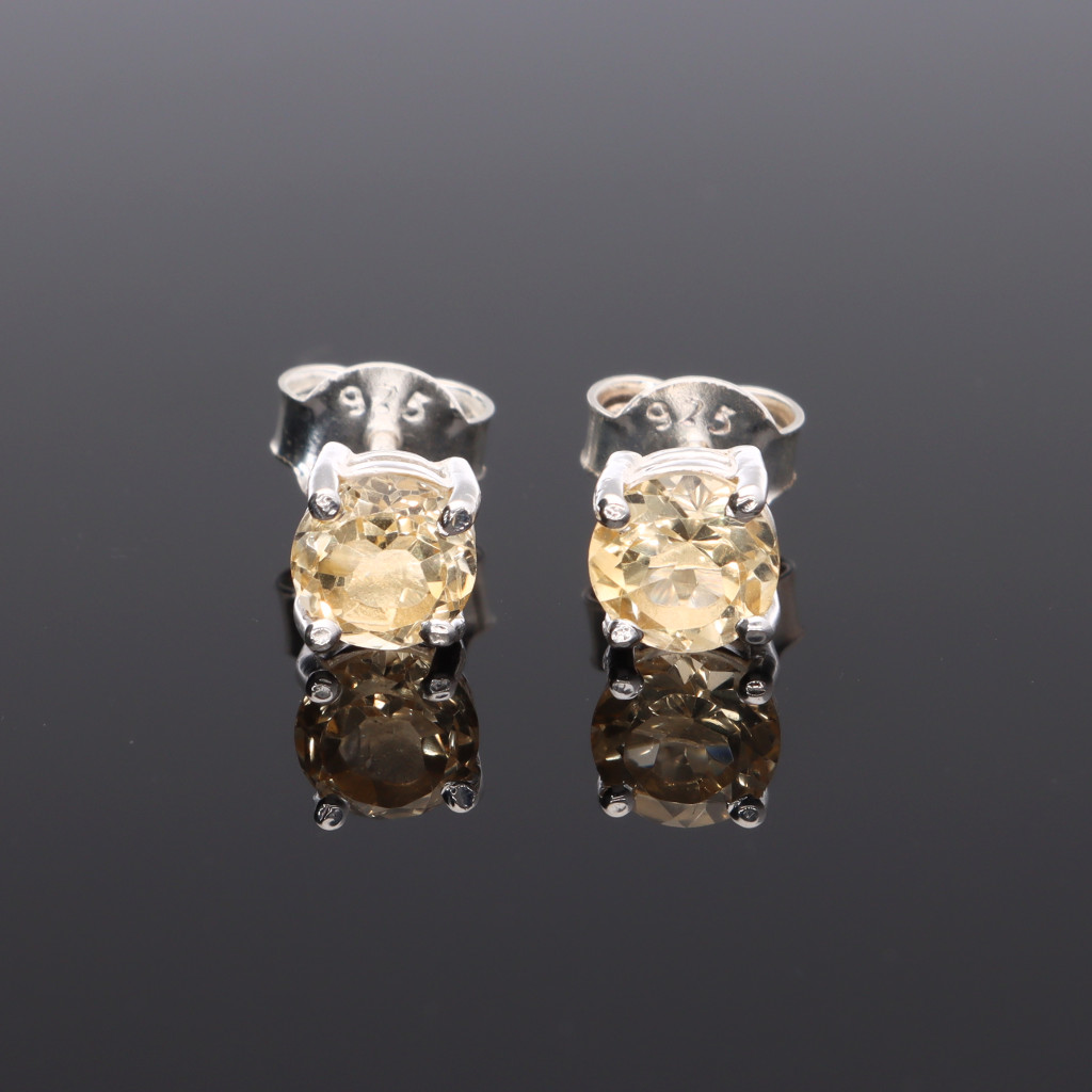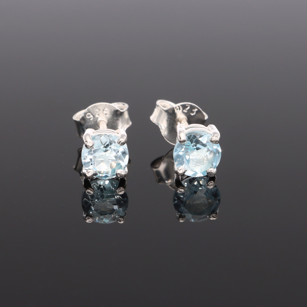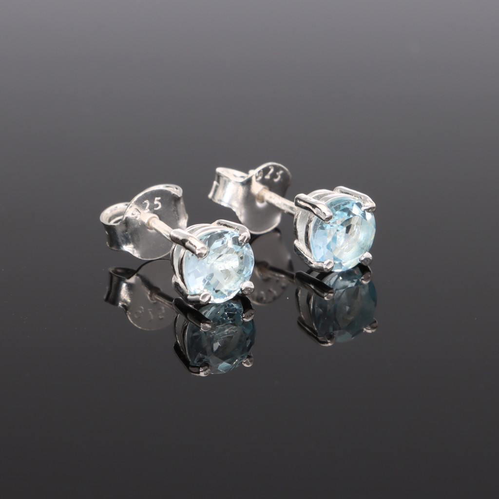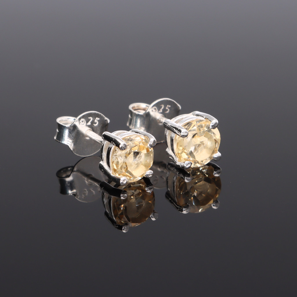 Ezüst fülbevaló, kerek, fazettált csiszolású ásványokkal, 4 karmos foglalatban.