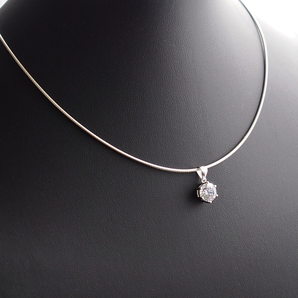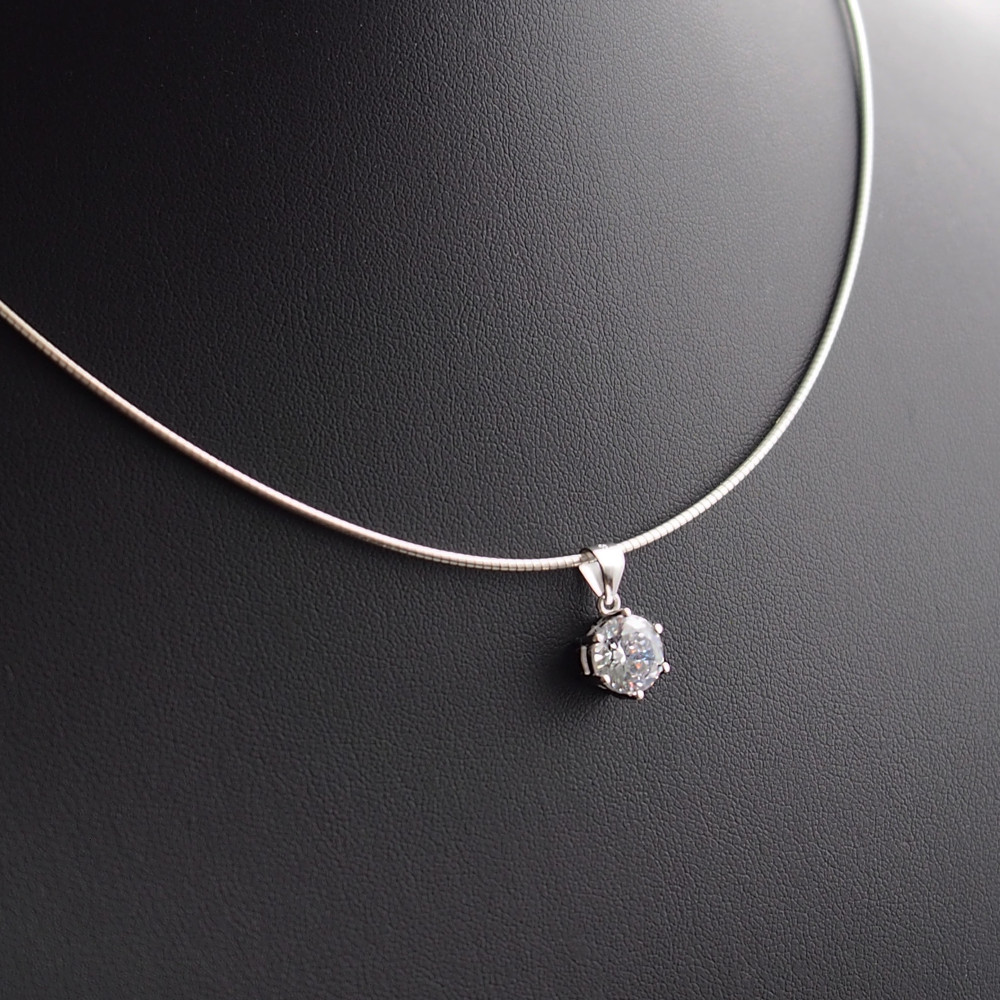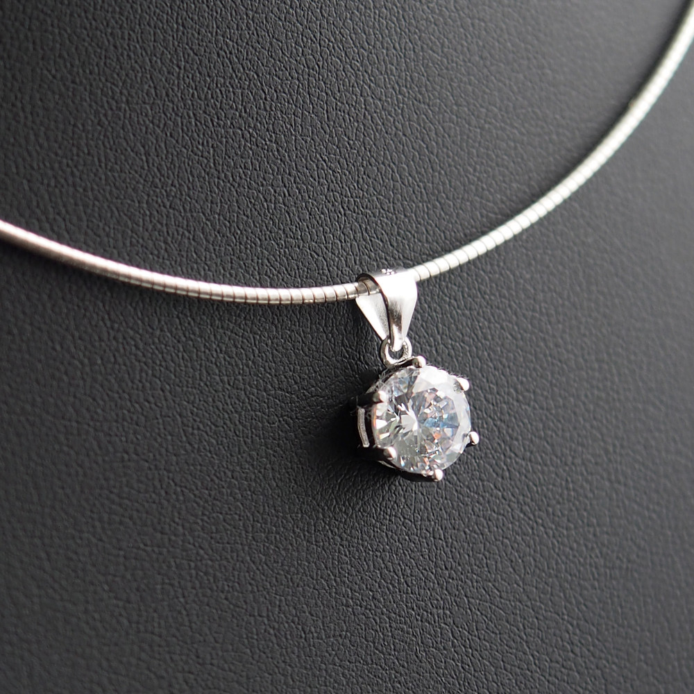 Félmerev ezüst nyaklánc  karmos folgalatú, kerek fehér cirkónia köves medállal
