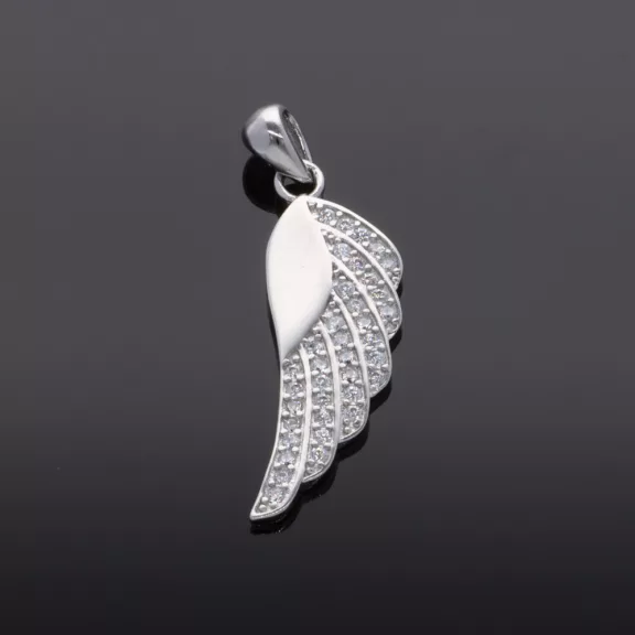 Ezüst angyalszárny medál, mely a belső ívén extra fényes, a tollak helyén pedig apró cirkónia kövekkel van díszitve