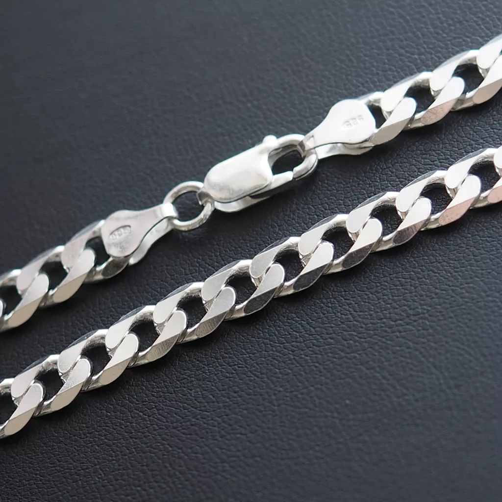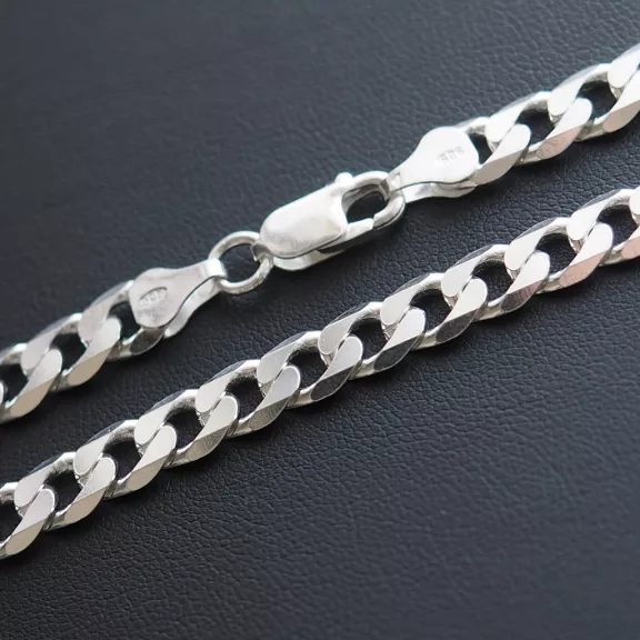 Anyag és megmunkálás A nyaklánc alapanyaga hitelesített 925 sterling ezüst. A szemek tömör kialakításúak, ami alapvetően megkülönbözteti az üreges láncoktól: ez a technológia nemcsak érezhető súlyt, hanem kiemelkedő mechanikai szilárdságot is ad az ékszernek. A láncszemek két irányból reszelt élei (gyémántvésés) sík felületeket hoznak létre, amelyek minden mozdulatnál határozott, férfias fényt vernek vissza.
