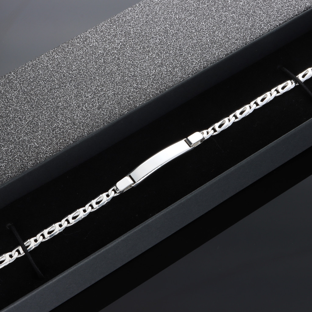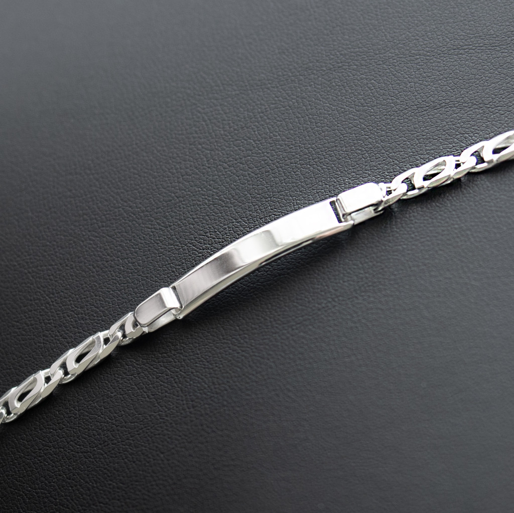 Ezüst lap mérete: 30x6 mm, a lánc szélessége: 5 mm