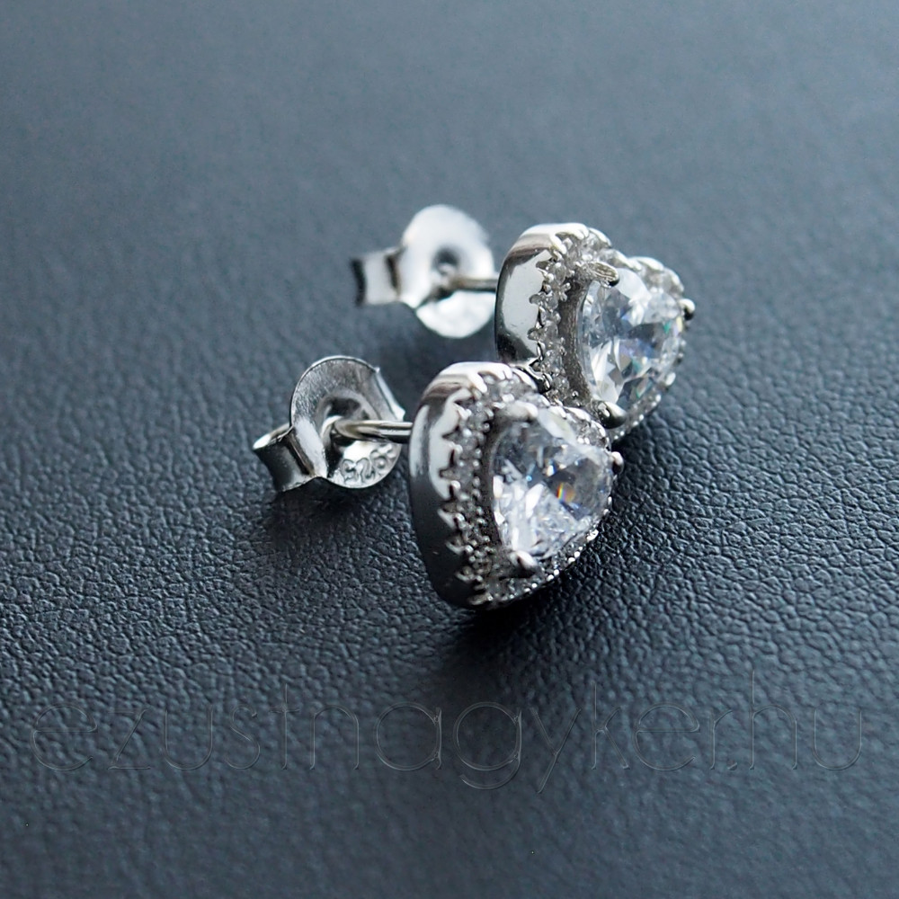Szív formájú cirkónia kő, a foglalata körbe pici cirkónia kövekkel díszítve