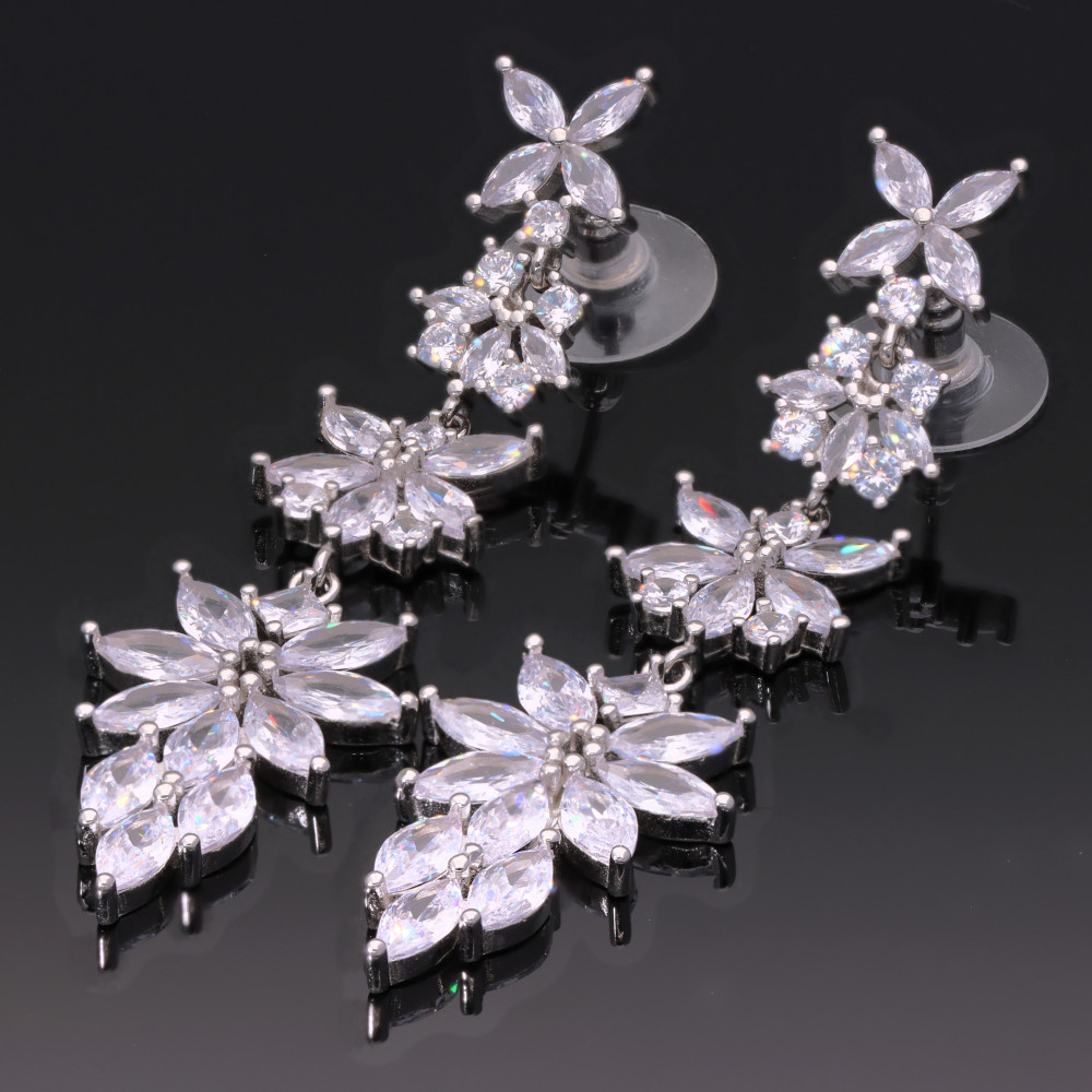 A fülbevaló 4 részből áll, melyek a navett kövekkel kirakva virágot ábrázolnak. A 4 rész lefelé növekvő méretű, az alsó virág pedig kiegészül egy köves-leveles szárral. A köves elemek elegáns ringatózással követik a fej mozgását.
