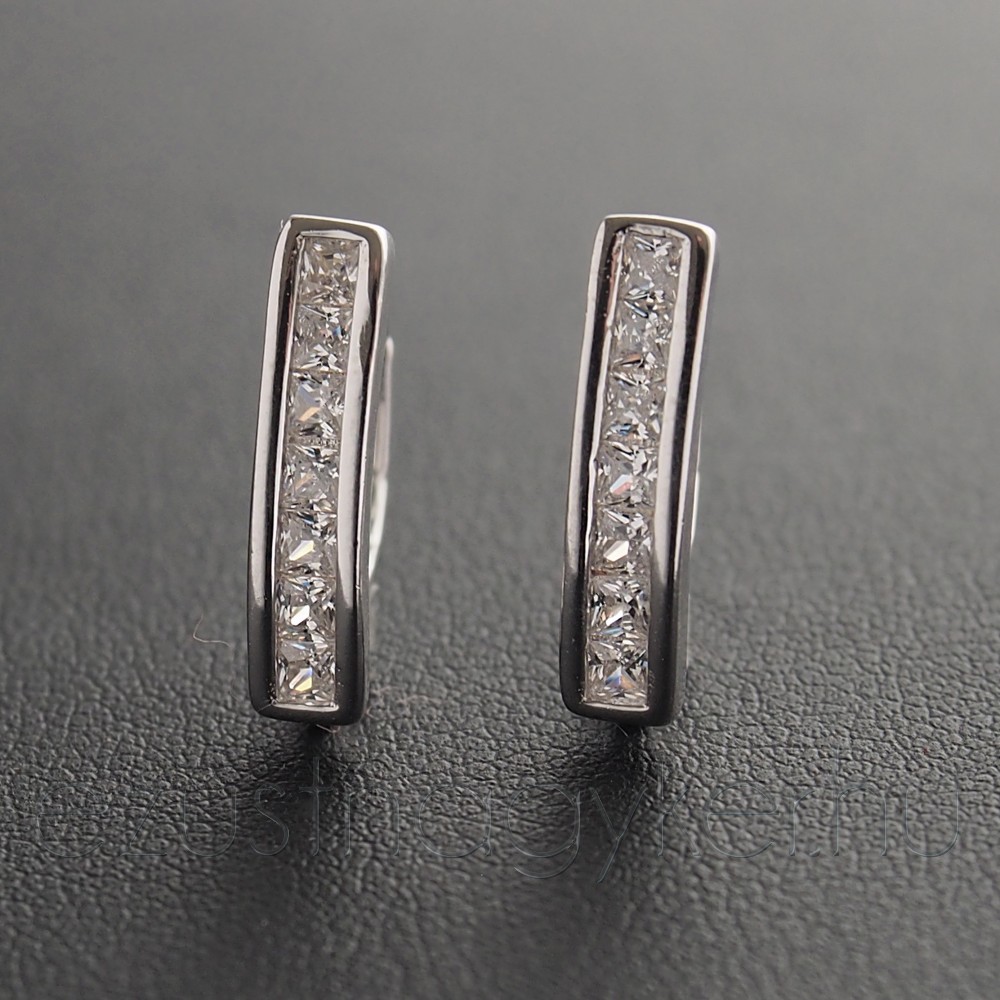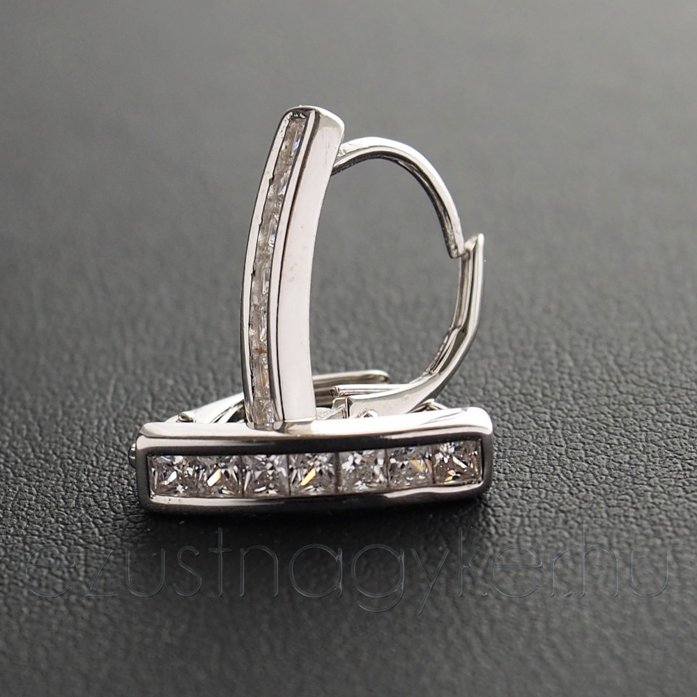 Patenzáras ezüst fülbevaló, magas fényű, négyzet formájú cirkónia kövekkel díszítve