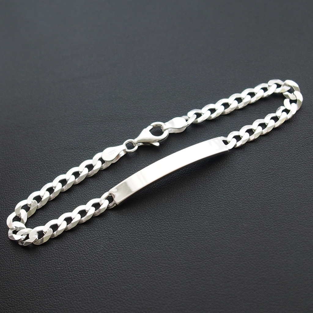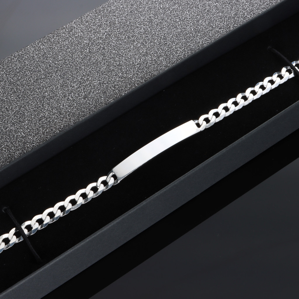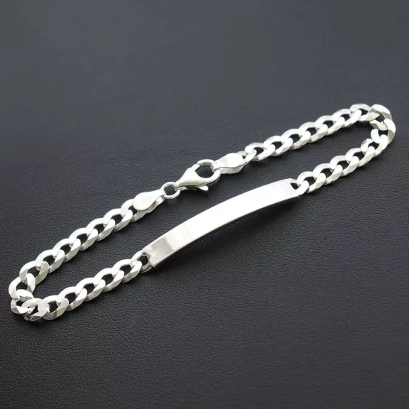 Ezüst lap mérete: 38x6 mm, a lánc szélessége: 6 mm