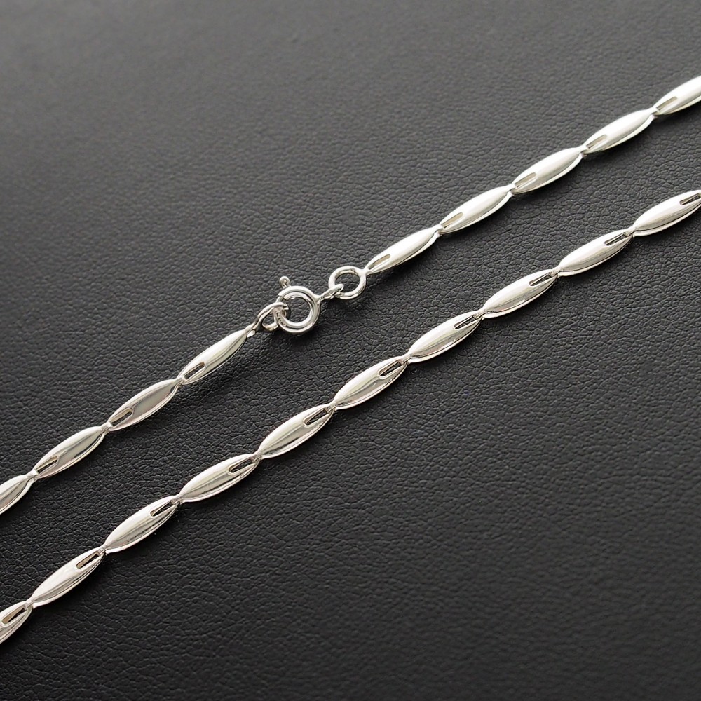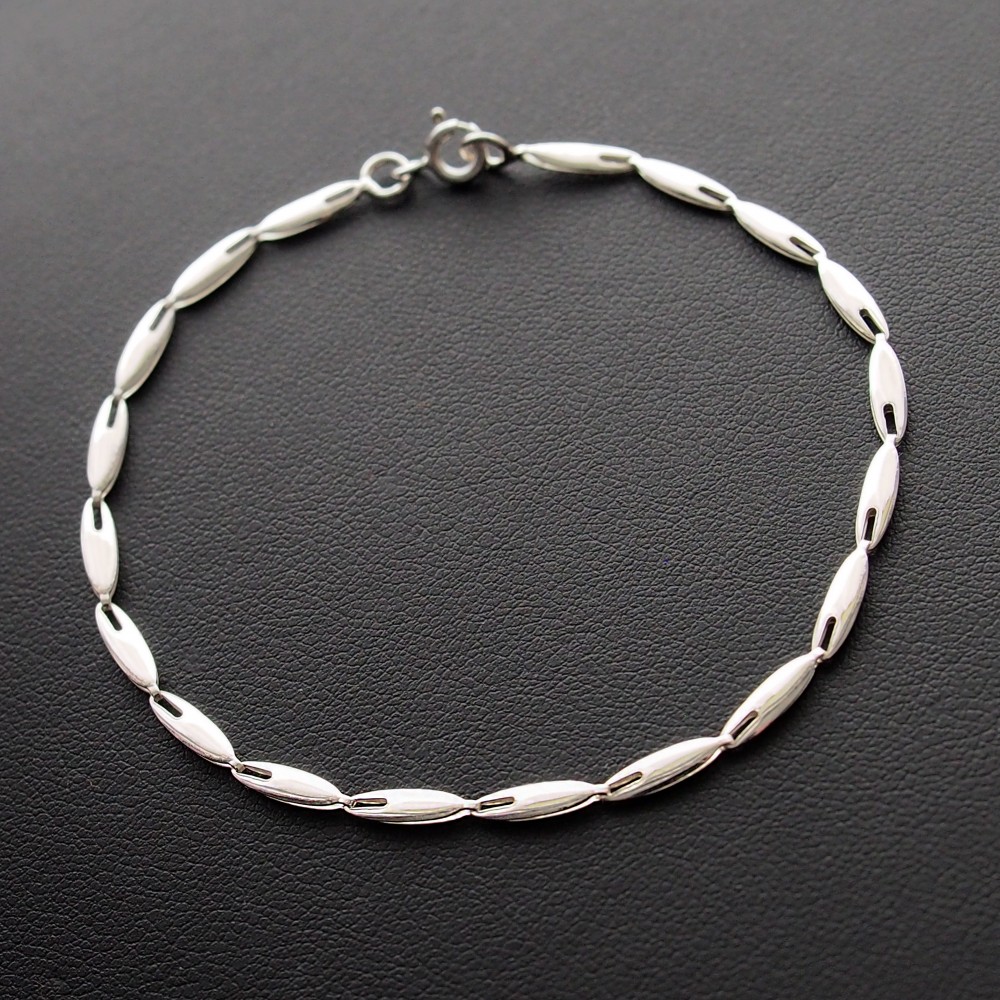 Szerkezeti felépítés A karkötő különlegességét a 10x3 mm méretű, préselt navette szemek adják. Ezek az elemek üreges, domborított kialakításúak, ami lehetővé teszi a szemek viszonylag nagy felületét alacsony súly mellett. A szemek közötti kapcsolódási pontok biztosítják a karkötő szép esését a csuklón, miközben a stabil rugós kapocs garantálja a biztonságos rögzítést.