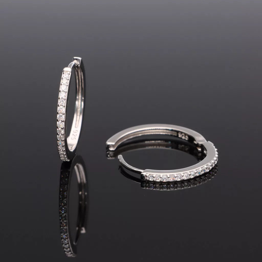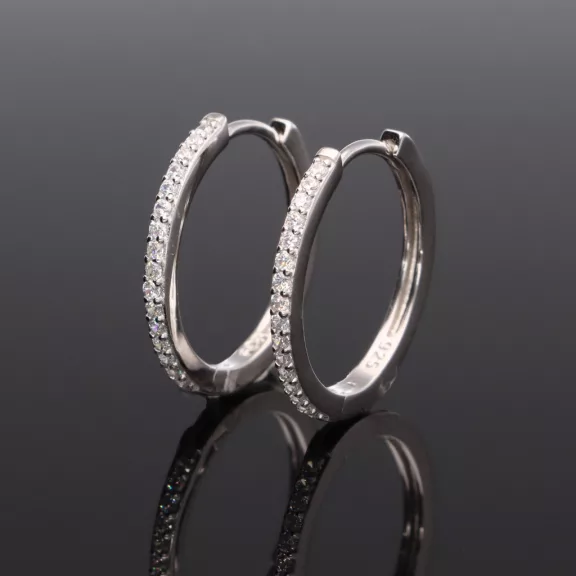 Ezüst karika fülbevaló, apró Cirkónia kövekkel díszítve