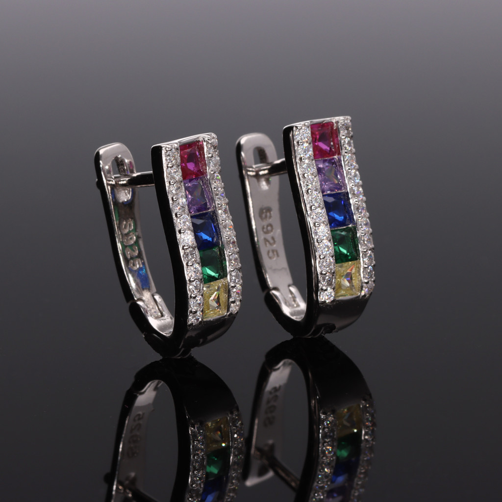 Ezüst francia kapcsos fülbevaló színes cirkónia kövekkel díszítve.