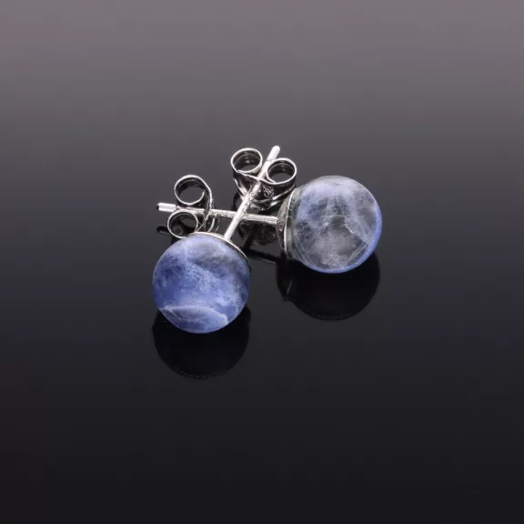 Gömb alakú Szodalit, ezüst bedugós fülbevlaló szerkezettel
