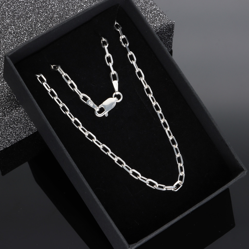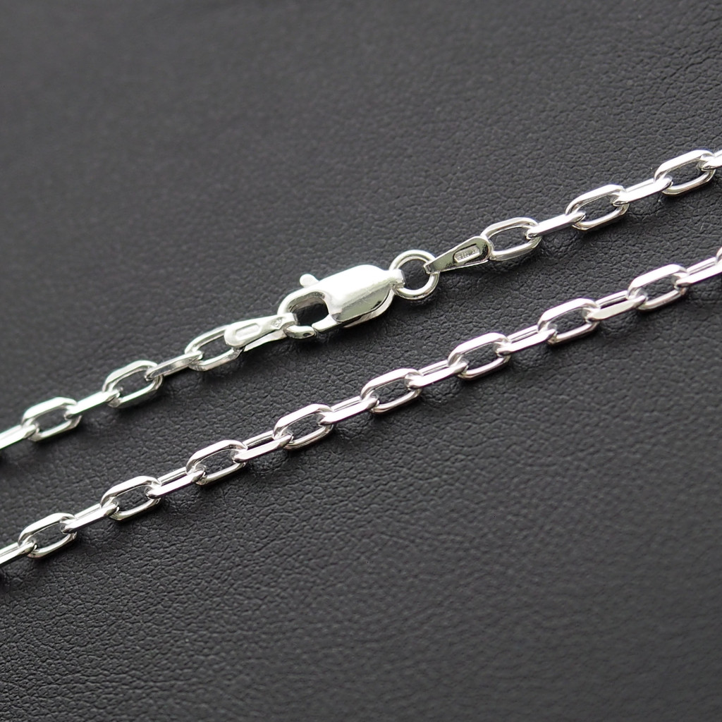 A szögletes szemezésének köszönhetően férfias megjelensű nyaklánc, melyet ajánlunk kisebb és közepes méretű és súlyú medálokhoz.