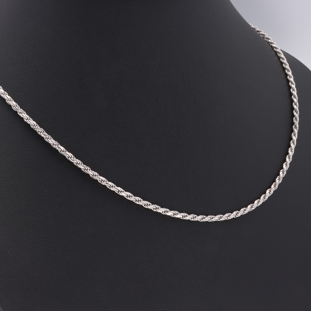 Masszív, tömör, enyhén merev, erős nyaklánc, rhódium bevonattal.