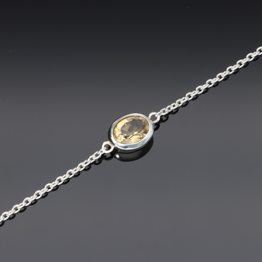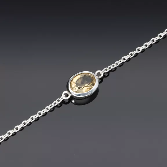 Ezüst anker karkötő, közepén egy fazettál Citrinnel díszítve, letisztult fogalatban