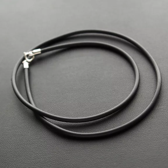 Vékony tömör kaucsuk nyaklánc, ezüst zárszerkezettel.