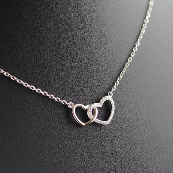A nagyobb szív apró cirkónia kövekkel foglalva, a kissebb fényes felülettel.