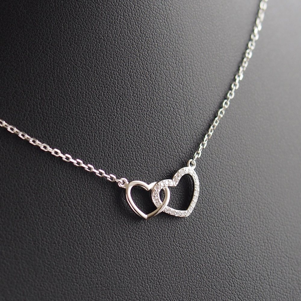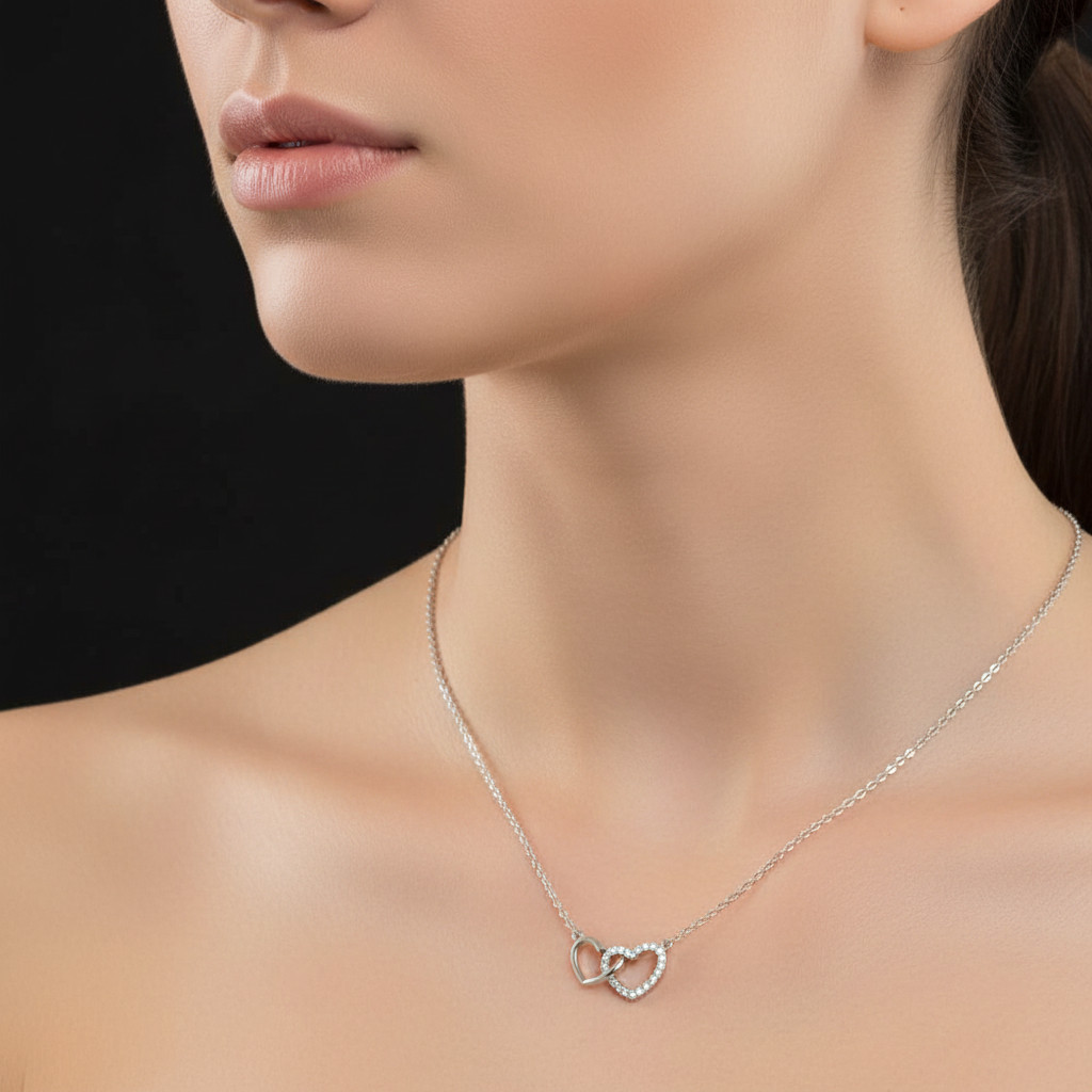 Cirkónia kővel díszített, rhódiumozott, Szívben Szív medál, vékony ezüst anker nyaklánccal.