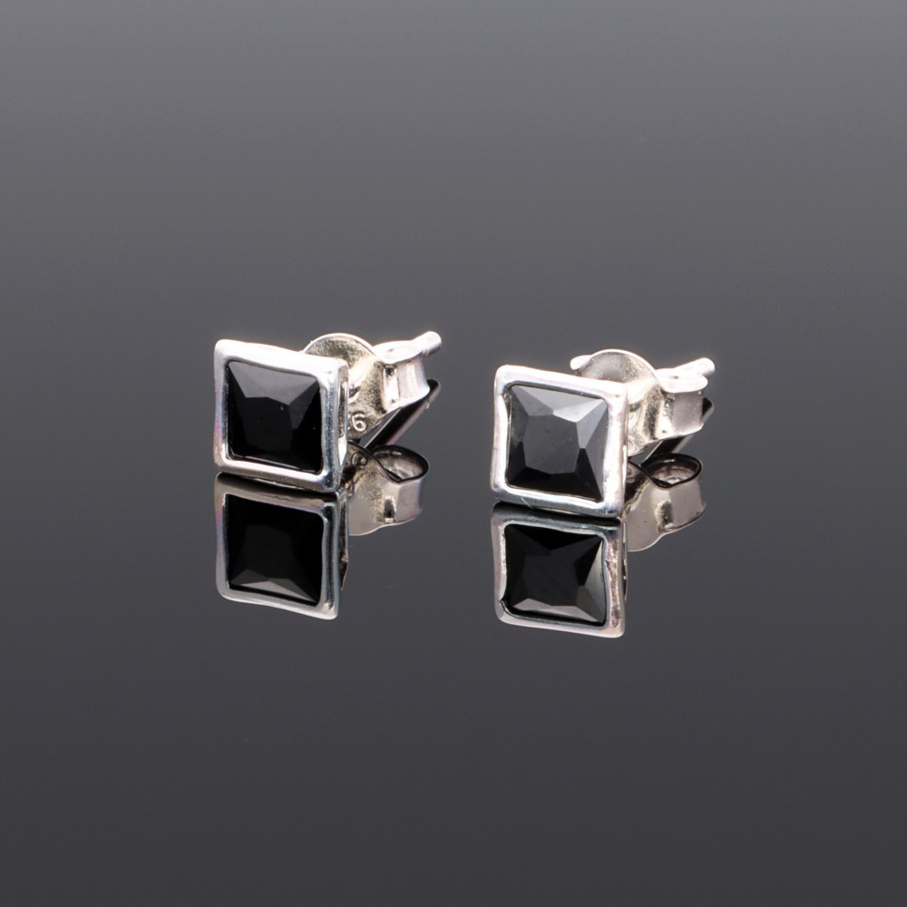Fekete  négyzetköves butonos fülbevaló, fekete cirókónia kővel