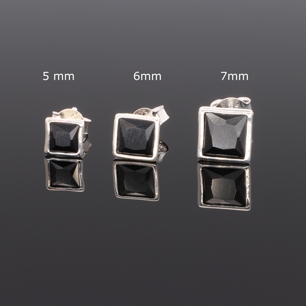 Fekete négyzet butonos cirónia fübevaló - 5x5 mm